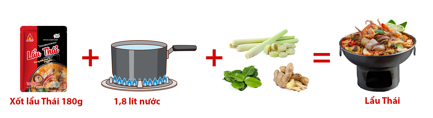 - Đổ khoảng 1,8 lít nước lọc vào nồi, đổ gói xốt lẩu Thái 180g. Khuấy đều và đun sôi.