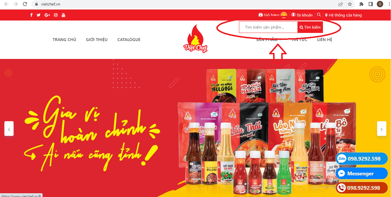 2. Tìm theo danh mục sản phẩm trên thanh menu (Lẩu thái, sốt ướp nướng, sốt salad,nước chấm đồ nướng,...)